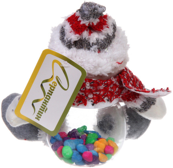 Интересная игрушка, милый снеговичок. Можно положить яркие конфетки. Хорошо как на подарок ребенку, так и для декора.