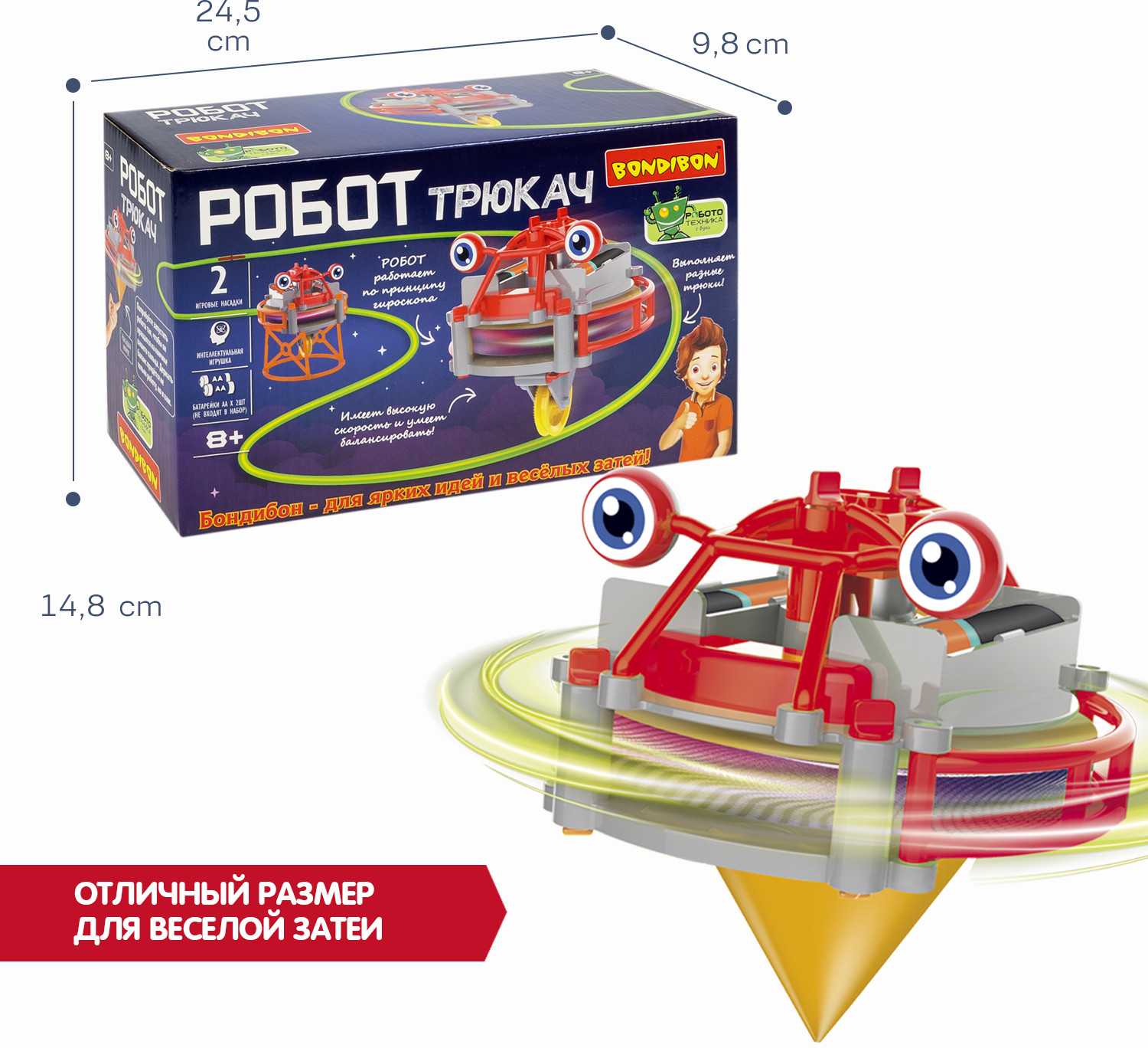 Bondibon Набор для опытов «Робот трюкач»В данный момент этот товар отсутствует в продаже. Возможно, у нас найдется аналогичный или похожий товар здесь. Серия: Робототехника с Буки Выполняйте захватывающие трюки с интеллектуальной игрушкой, которая балансирует на высокой скорости! Набор для опытов «Робот трюкач» с гироскопом и двумя насадками серии Робототехника с Буки от Bondibon развивает интерес к физике, механике, зрительное восприятие, внимание, логику и эмоциональный интеллект. Установите батарейки и выберите одну из двух насадок. Запустите мотор с помощью кнопки включения на корпусе. Поставьте умную игрушку на тумбу из набора. Подождите немного, пока мотор наберет обороты, и приступайте к трюкам. Робот, работающий по принципу гироскопа, может крутиться на кончике пальца, ходить по проволоке, двигаться по ободку стакана и многое другое. В конце игры выключите трюкача и поставьте его на тумбу до остановки мотора. |