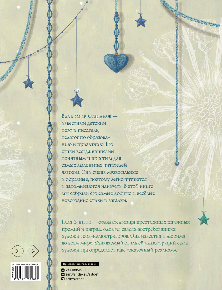 В данный момент этот товар отсутствует в продаже. Возможно, у нас найдется аналогичный или похожий товар здесь. Серия: Новогодние мечты Владимир Степанов — известный детский поэт и писатель, педагог по образованию и призванию. Его стихи всегда написаны понятным и простым для самых маленьких читателей языком. Они очень музыкальные и образные, поэтому легко читаются и запоминаются наизусть. В этой книге мы собрали его самые добрые и весёлые новогодние стихи и загадки.