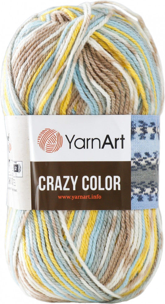 YarnArt Пряжа для вязания «Crazy color», 180 Желтый-голубой-бежевый