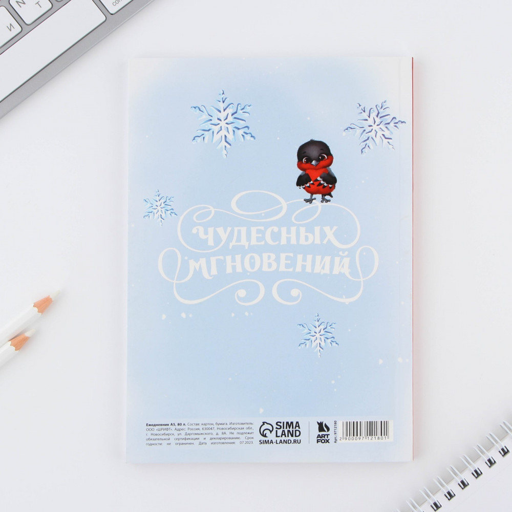 Ежедневник идеально подойдет для записи важных дат и встреч. Тонкая обложка и качественный материал придают ежедневнику красивый вид. Отличное сочетание интересного дизайна. Сделайте ваши рабочие будни в преддверии Нового года чуть более красочными и приятными.