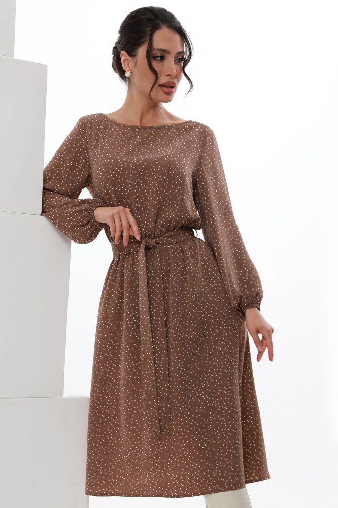 Платье с поясом от бренда DStrend. Модель прямого силуэта, выполнена из плательного полотна с принтом. Округлый вырез горловины. Рукав втачной, длинный. Без застёжки и карманов. Практичная модель на каждый день.