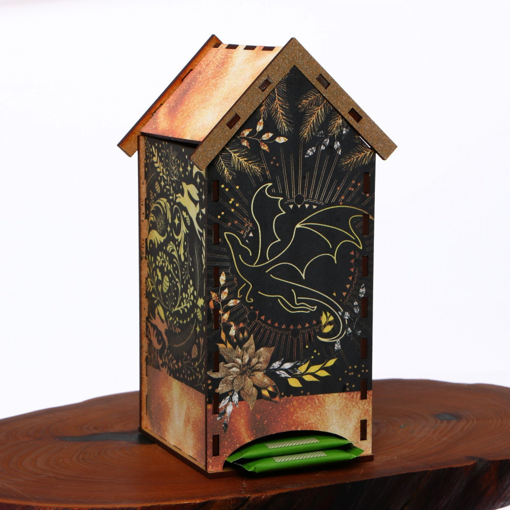 Серия: Символ года 2024 Чайный домик — это необычная упаковка для хранения чая. Он поможет навести порядок на обеденном столе, а также станет его яркой деталью. Чайные пакетики закладываются сверху внутрь домика и вынимаются снизу. Домик выполнен из фанеры, а красочность рисунка задаётся благодаря ламинации. Размер домика — 19,2 × 8,6 см. |