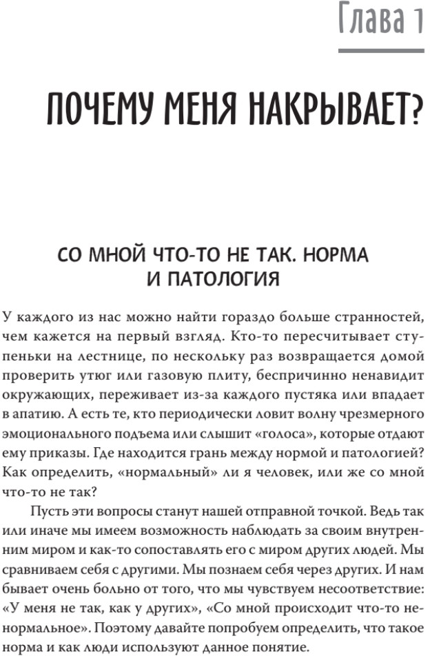 Серия: Сам себе психолог У каждого из нас можно найти гораздо больше странностей, чем кажется на первый взгляд. Кто-то пересчитывает ступеньки на лестнице, по нескольку раз возвращается домой проверить утюг или плиту на кухне, беспричинно ненавидит окружающих, переживает из-за каждого пустяка или впадает в апатию. А есть те, кто периодически ловит волну чрезмерного эмоционального «подъёма» или слышит «голоса», которые отдают ему приказы. Где находится та грань между нормой и патологией? Как вообще определить, «нормальный» ли я человек или же со мной что-то не так? Разберемся почему так происходит и что с этим делать. |