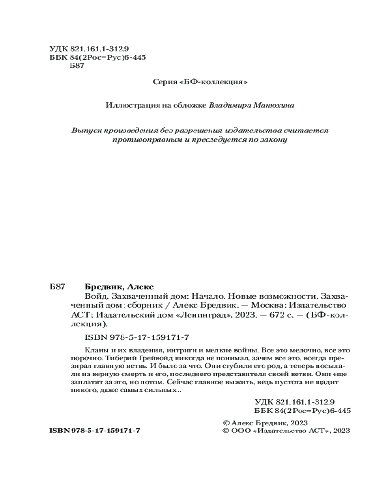 Серия: Коллекция Кланы и их владения, интриги и мелкие войны. Все это мелочно, все это порочно. Тиберий Грейвойд никогда не понимал, зачем все это, всегда презирал главную ветвь. И было за что. Они сгубили его род, а теперь посылали на верную смерть и его, последнего представителя своей ветви. Они еще заплатят за это, но потом. Сейчас главное выжить, ведь пустота не щадит никого, даже самых сильных... |