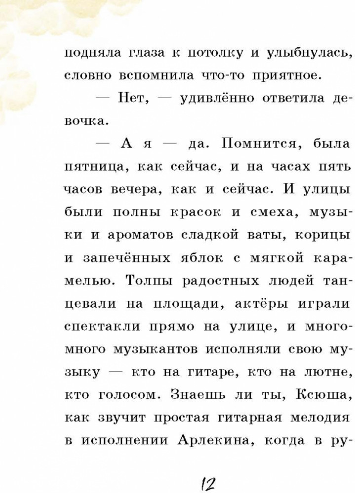 Серия: Крестики-нолики Счастье, когда в жизни ребёнка появляется своя Мэри Поппинс! Ксюше повезло: Клавдия Леонидовна, её новая учительница музыки, именно такая волшебница. С ней игра на фортепиано из скучного разучивания гамм превращается в увлекательное приключение: прямо в комнате разворачиваются бал-маскарад и кукольный театр, а мелодии сочиняются по щелчку. И как здорово, что для этого требуются только два секретных ингредиента — фантазия и любовь!Елена Бодрова — писатель, композитор и музыкант. Лауреат Международной детской литературной премии имени В. П. Крапивина и премии «Книгуру». Много лет своей жизни Елена посвятила работе в музыкальной школе. Именно поэтому её повесть так пропитана духом искусства и творчества. Иллюстрации Ланы Соловьёвой добавили истории лёгкости и полутонов. Для младшего школьного возраста. |