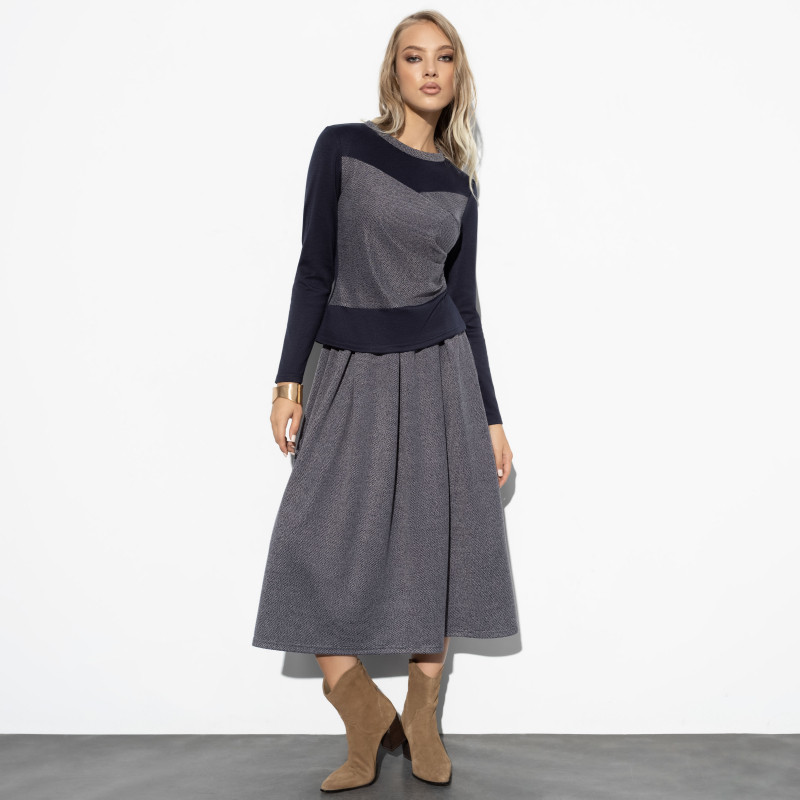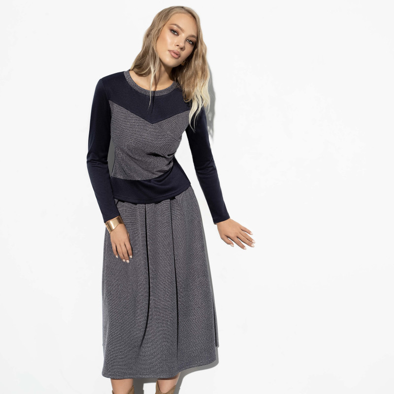 Недешёвая ткань, очень качественный пошив, юбка на резинке, не давит, сочетание цветов красиво выглядит