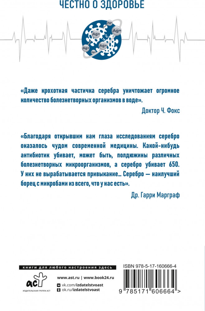 Серия: Честно о здоровье В этой книге вы найдете описание методик лечения и дозировок препаратов серебра при лечении внутренних органов, дыхательной системы, полости рта, заболеваний глаз, кожи, применение этих препаратов в травматологи и хирургии, педиатрии, гинекологии и урологии, при лечении сахарного диабета. Узнаете о целебных свойствах и благотворном влиянии серебряной воды на организм человека, а также о способах её приготовления и хранения. |