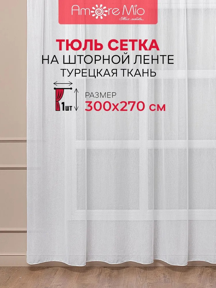 Данная модель тюля торговой марки Amore Mio выполнена из некрупной сетки. Шторы прекрасно дополнят интерьер как гостиной, так и спальни, кухни или детской комнаты, добавят Вашему интерьеру уюта и романтичности. Тюль выглядит легким и воздушным. Отлично стирается, гладится и практически не выцветает на солнце. Прекрасное соотношение цены и качества. Рекомендации по уходу: машинная стирка на деликатном режиме при 30 градусах с использованием жидкого моющего средства без отбеливающих компонентов, отжим на деликатном режиме. Изделие на шторной ленте и готово к использованию. Количество в упаковке — 1 шт.