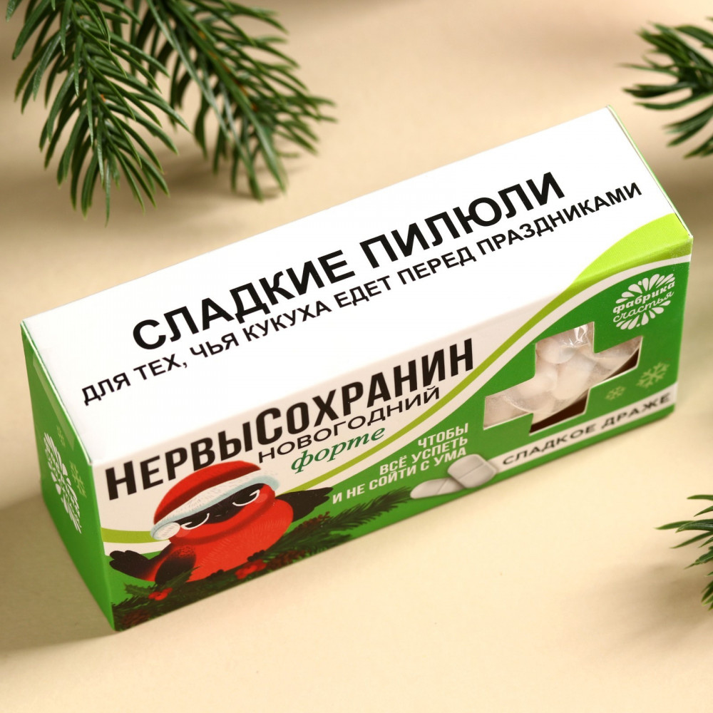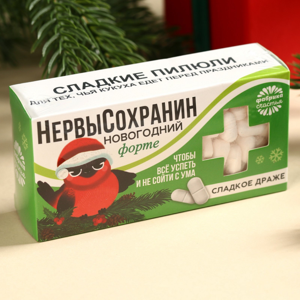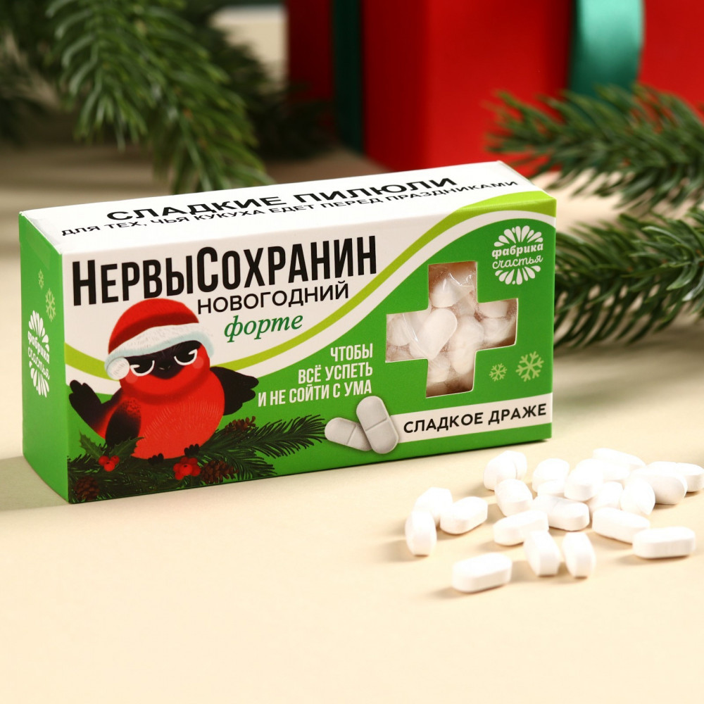 Фабрика счастья Конфеты-таблетки «Нервысохранин»В данный момент этот товар отсутствует в продаже. Возможно, у нас найдется аналогичный или похожий товар здесь. Серия: Трендовые персонажи Вам знакомо то чувство, когда невыносимо хочется чего-нибудь вкусного? В этом нет ничего страшного, баловать себя полезно, ведь сладкое повышает уровень эндорфинов — гормонов счастья. Драже принесёт заряд хорошего настроения и станет отличным презентом на новый год для друзей. |