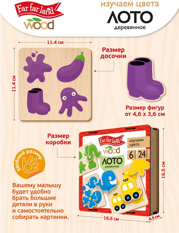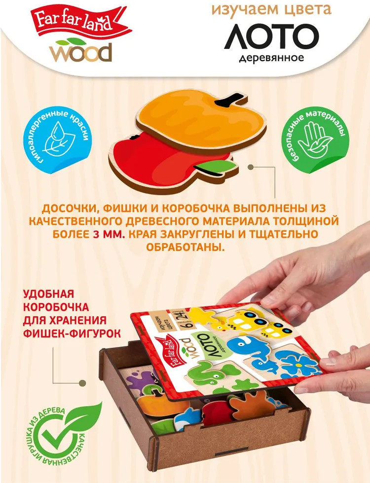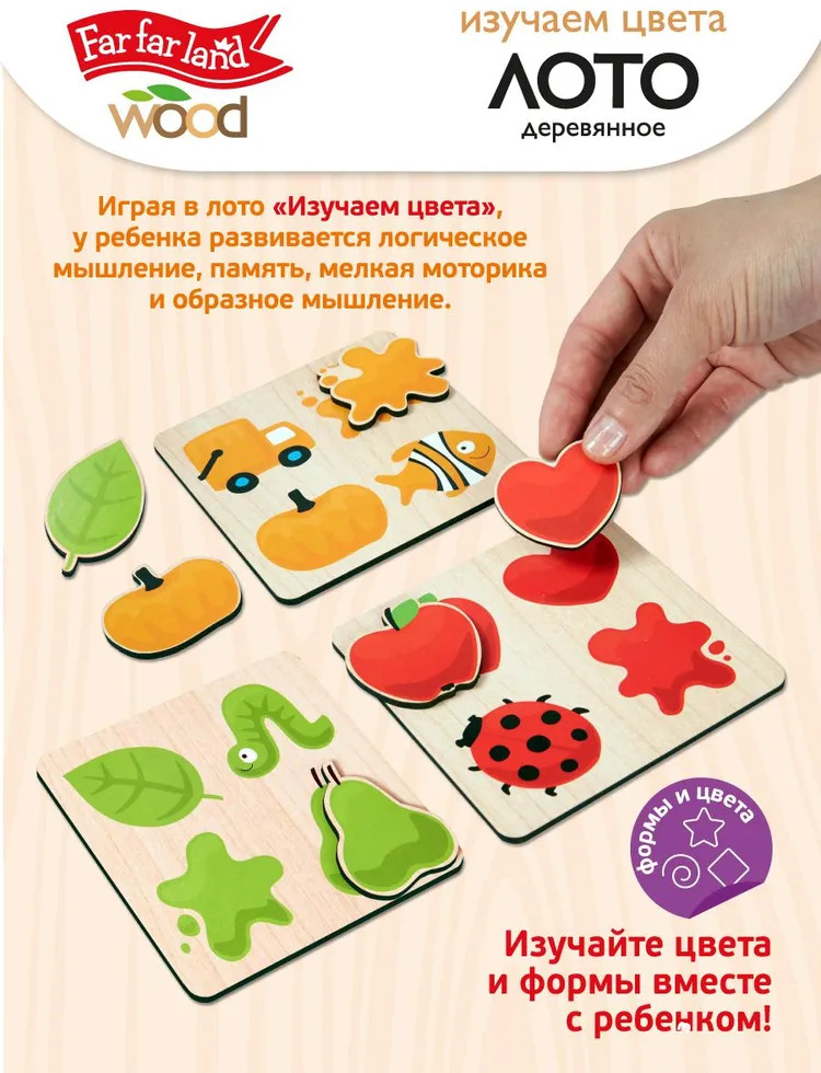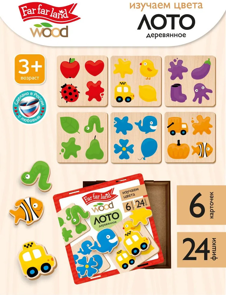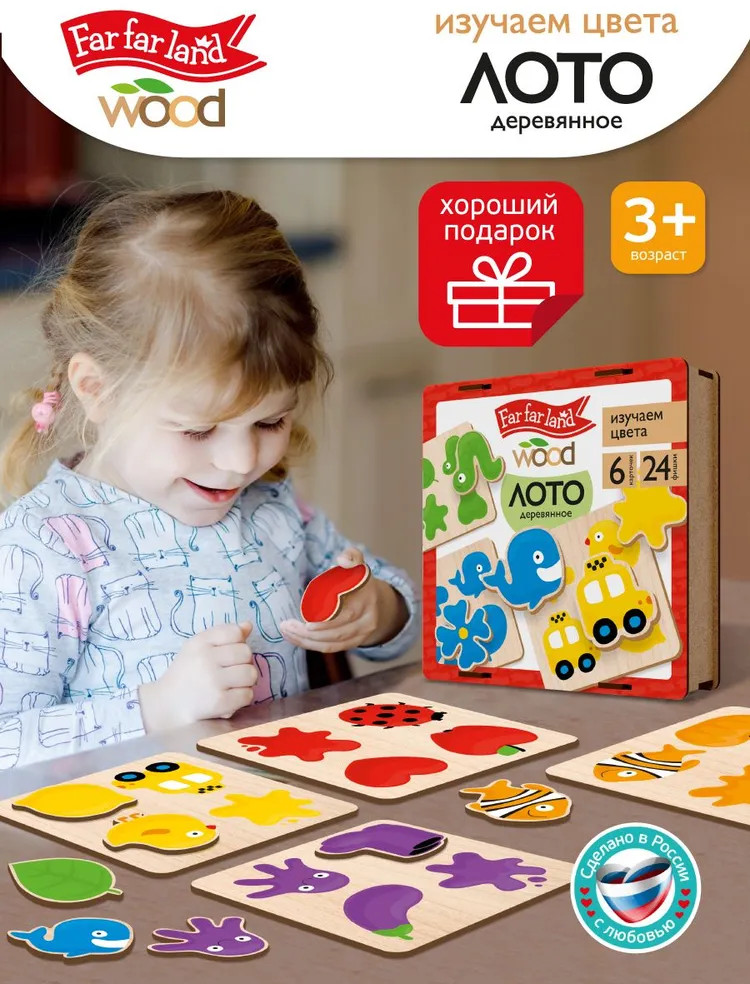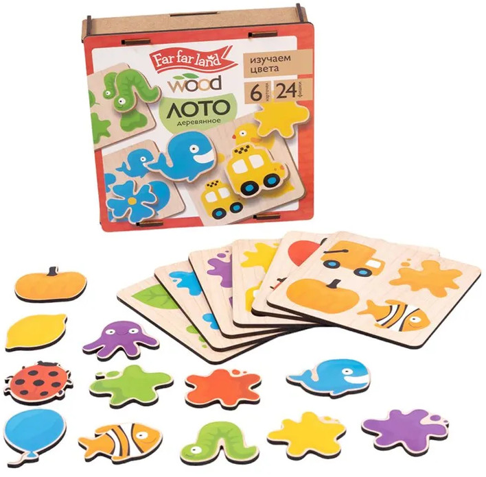 Деревянное лото «Изучаем цвета» — это увлекательная развивающая игра для малышей. Подбирая фигурки, ребёнок ищет соответствие между изображением и соответствующим ему цветом. Пазлы выполнены из высококачественного материала и хранятся в деревянной коробочке. |