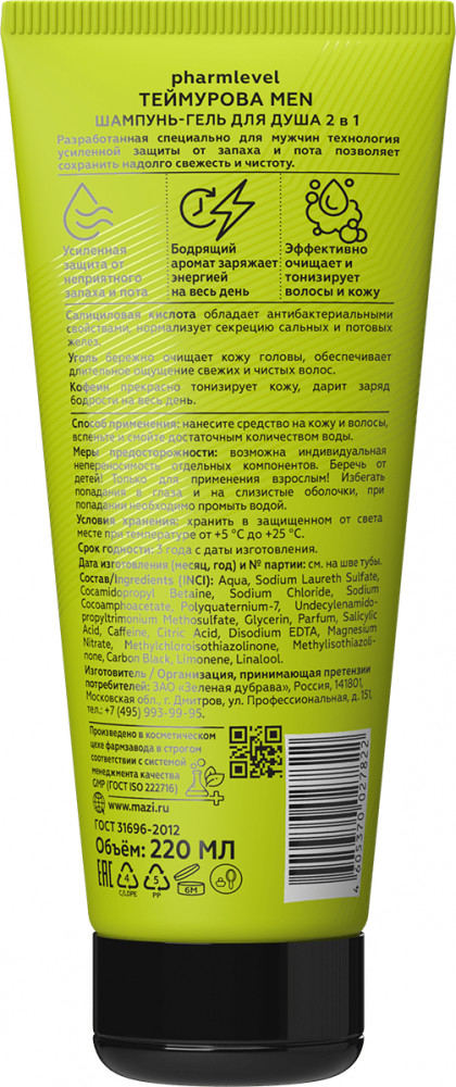 Pharmlevel Шампунь-гель для душа 2 в 1 «Теймурова Men»