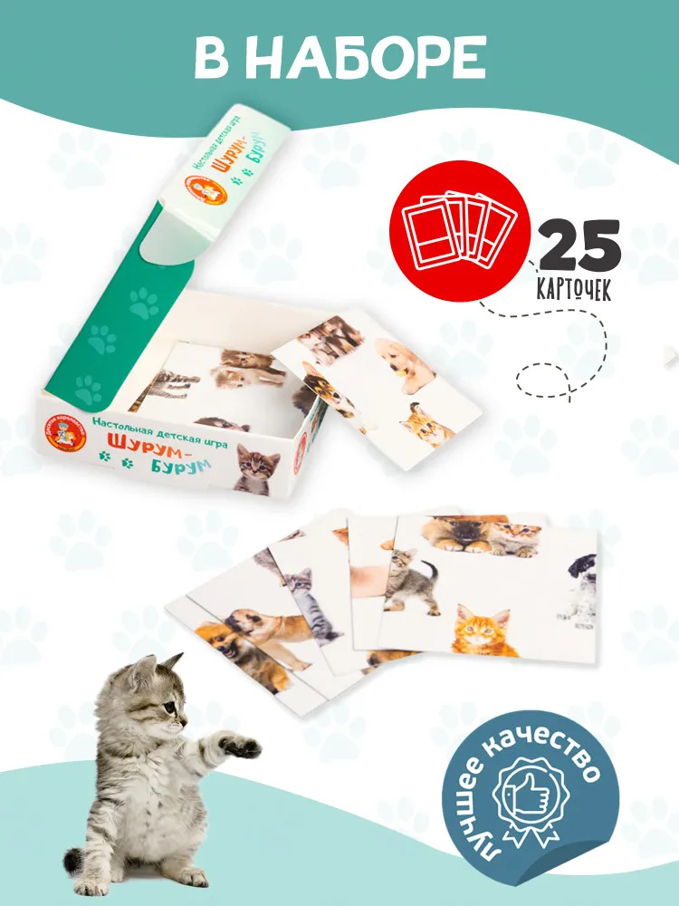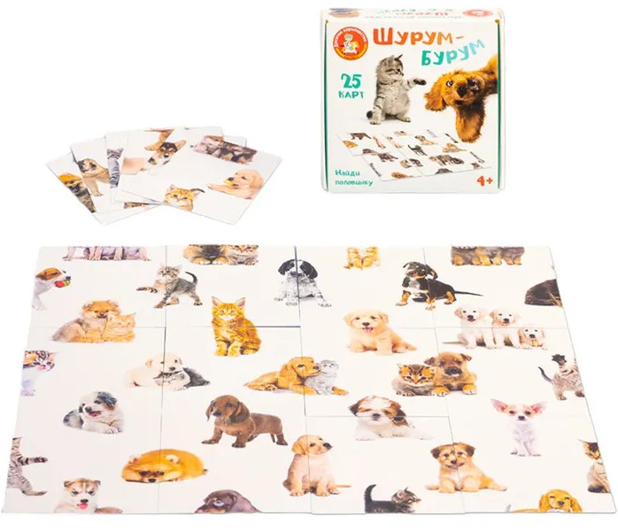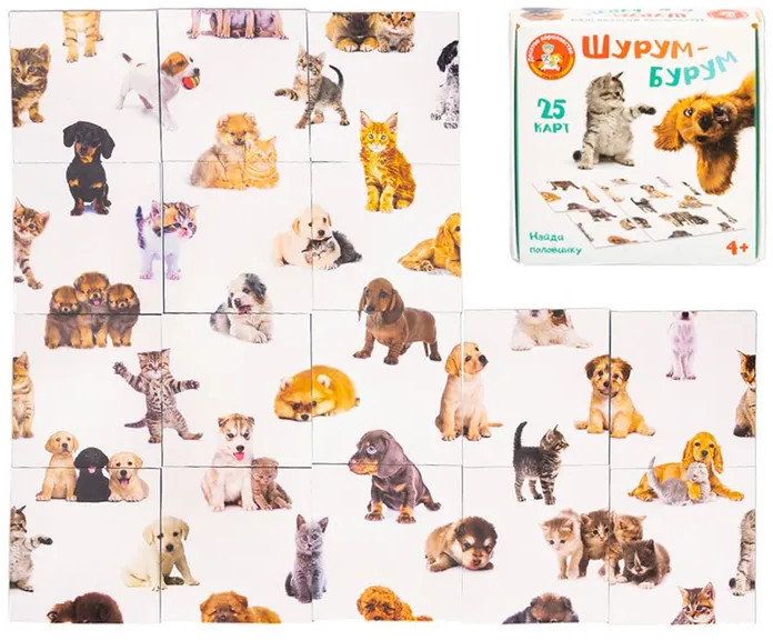 Настольная игра для детей «Шурум-Бурум. Найди половинку» (кошки, собаки) — это занимательная игра для детей. Она поможет с пользой провести время, собирая из карточек яркие изображения кошек и собак. У игры удобный формат, коробочка не занимает много места и позволяет брать игру в дорогу или в гости. |