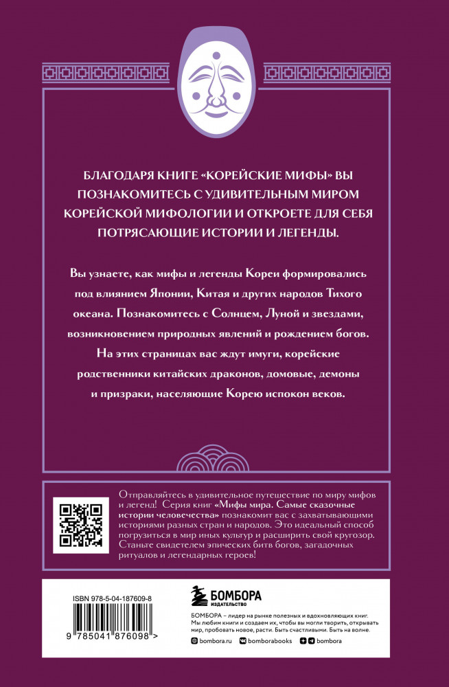 Множество черно-белых и цветных иллюстраций, а также QR-коды с дополнительными иллюстративными материалами дополнят ваш опыт погружения в мифологию и культуру Кореи! Отправляйтесь в удивительное путешествие по миру мифов и легенд! Серия книг «Мифы мира. Самые сказочные истории человечества» познакомит вас с захватывающими историями разных стран и народов. Это идеальный способ погрузиться в мир иных культур и расширить свой кругозор. Станьте свидетелем эпических битв богов, загадочных ритуалов и легендарных героев!