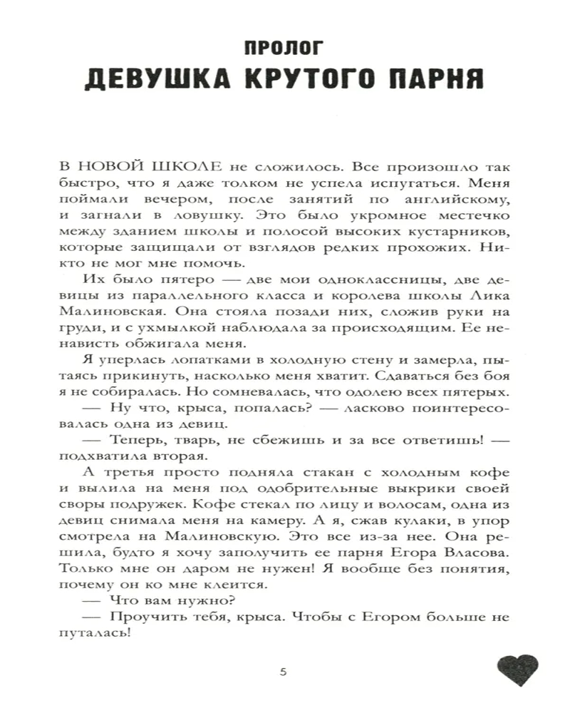 Книга пришла в упаковке и сама история очень трогательная, о первый любви и троп от ненависть до любви, тагже сам автор поднял тему булинга, думаю это книга может понравился многим но не всем
