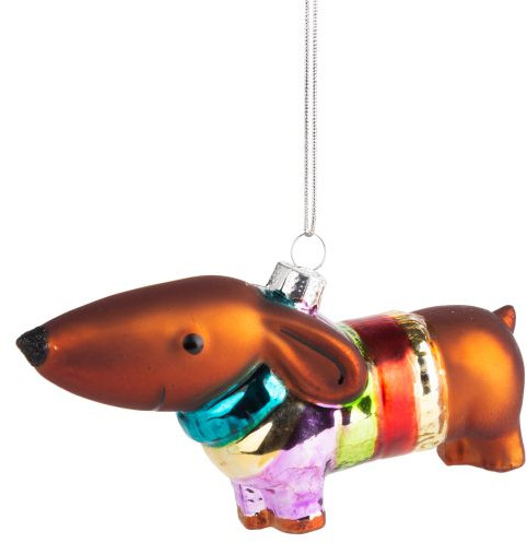 Подвесное украшение «Такса» из стекла. Коллекция из формованного стекла — новая переосмысленная версия классических игрушек. Эти подвесы отличаются тонкостью линий, насыщенностью используемых красок, смелой реализацией и современным прочтением привычных вещей. Яркие и акцентные украшения для ели. Разнообразная тематика не оставит никого равнодушным, и Вы сможете подобрать удивительное украшения для себя или в подарок.