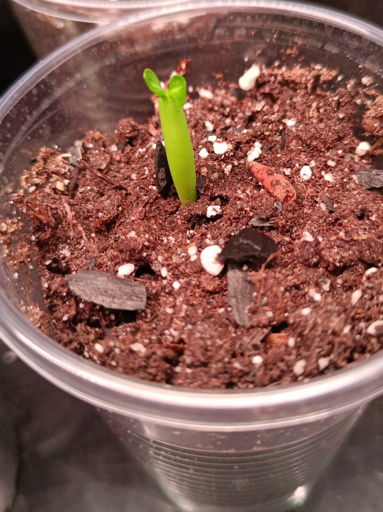 Всё делала по инструкции. Семена проклюнулись на 2 день, затем я присыпала их на 5 мм почвой, увлажняла 1 раз при посадке наполовину стаканчика. До полного прорастания прошло 16.01-21.01 дней. Лампа на 18 Вт спектр для экзотики spfr белый.