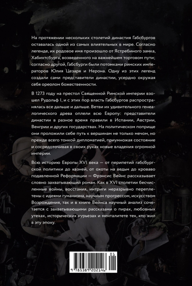💳 Оплатить за товар можно при получении 🇰🇿 Есть бесплатная доставка по Казахстану 🎁 Копите бонусы с каждой покупки Серия: Исторический интерес Книга известного историка Фрэнсиса Вейнса посвящена переломному периоду в европейской истории — необычайно долгому и насыщенному событиями XVI веку. Это важнейший рубеж, вобравший в себя черты и угасающего Средневековья с его охотой на ведьм, Реформацией, жестокими войнами, и Нового времени, эпохи перемен и научных открытий. Война следует за войной, в Европе вспыхивают восстания, ведьм сжигают на кострах. Османские войска вторгаются в Европу. Мартин Лютер пишет «95 тезисов», за что будет отлучен от церкви. Границы габсбургских владений пролегают так далеко, что затем их назовут империей, «над которой никогда не заходит солнце». |