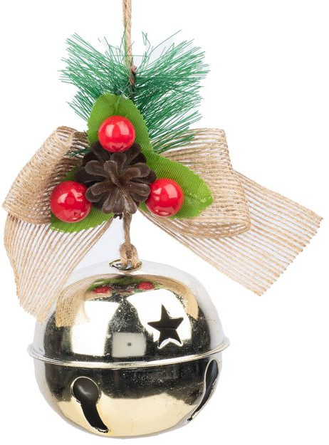 Magic Time Украшение ёлочноеВ данный момент этот товар отсутствует в продаже. Возможно, у нас найдется аналогичный или похожий товар здесь. Новогодний золотой бубенчик прекрасно дополнит собой праздничный интерьер или новогоднюю елку и просто будет радовать окружающих. Своим универсальным дизайном украшение локанично подчеркнет убранство дома, подарит ощущение сказки и волшебства. Изделие выполнено из металла, отделано пластиковым ягодами и джутовой лентой. |
