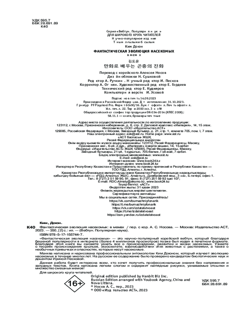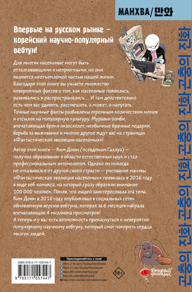 Серия: Вебтун. Популярная наука «Фантастическая эволюция насекомых» — это научно-популярный корейский вебтун, который благодаря бешеной популярности в интернете (более 4 миллионов просмотров) позже был издан в печатном формате. Благодаря этой книге вы сможете узнать все о происхождении, развитии и жизни насекомых. Узнаете  |