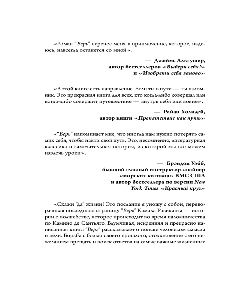 💳 Оплатить за товар можно при получении 🇰🇿 Есть бесплатная доставка по Казахстану 🎁 Копите бонусы с каждой покупки Серия: Книги, которые нужно прочитать до 35 лет Основана на прохождении автором легендарному пути Сантьяго и рассказана в лучших традициях Пауло Коэльо и Митча Элбома. |