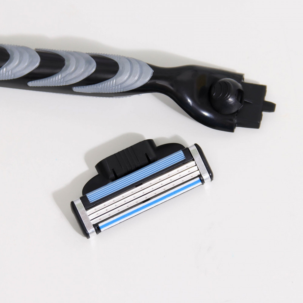 Бритвенный станок с тремя лезвиями и увлажняющей полоской, в наборе 12 сменных кассеты лезвий.