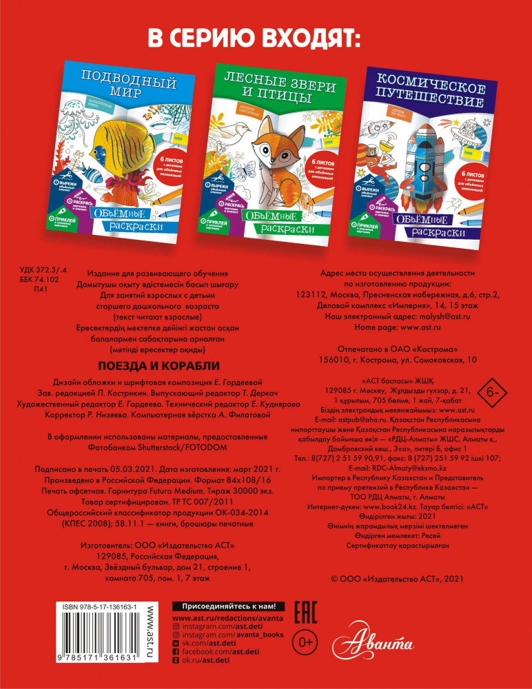 Серия: Объемные раскраски Эта раскраска необычная: в ней есть не только картинки с красочным фоном, но и дополнительные элементы на отдельных листах, которые тоже нужно раскрасить, выдавить и наклеить по схеме на основную картинку. Теперь так легко сделать собственными руками объемные модели животных, а заодно дать волю фантазии, развить творческие способности и сообразительность! |