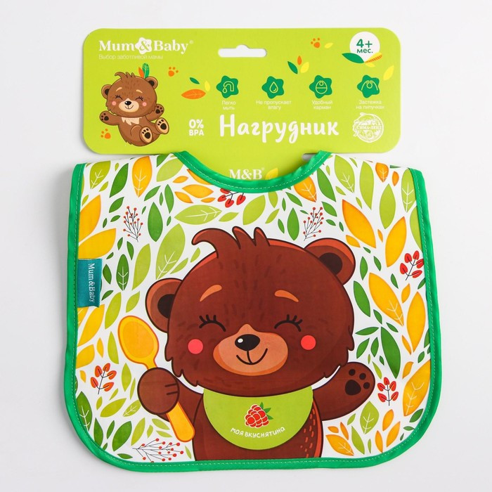 Mum&Baby Нагрудник с кармашком «Мишка»В данный момент этот товар отсутствует в продаже. Возможно, у нас найдется аналогичный или похожий товар здесь. Серия: Мама и малыш Нагрудник не промокает и качественно защищает, поэтому одежда малыша не испачкается в процессе кормления. У слюнявчика есть специальный кармашек, который выворачивается на лицевую сторону на время приема пищи, в него попадают все крошки: чистым останется не только сам ребёнок, но и место, где он кушает. |