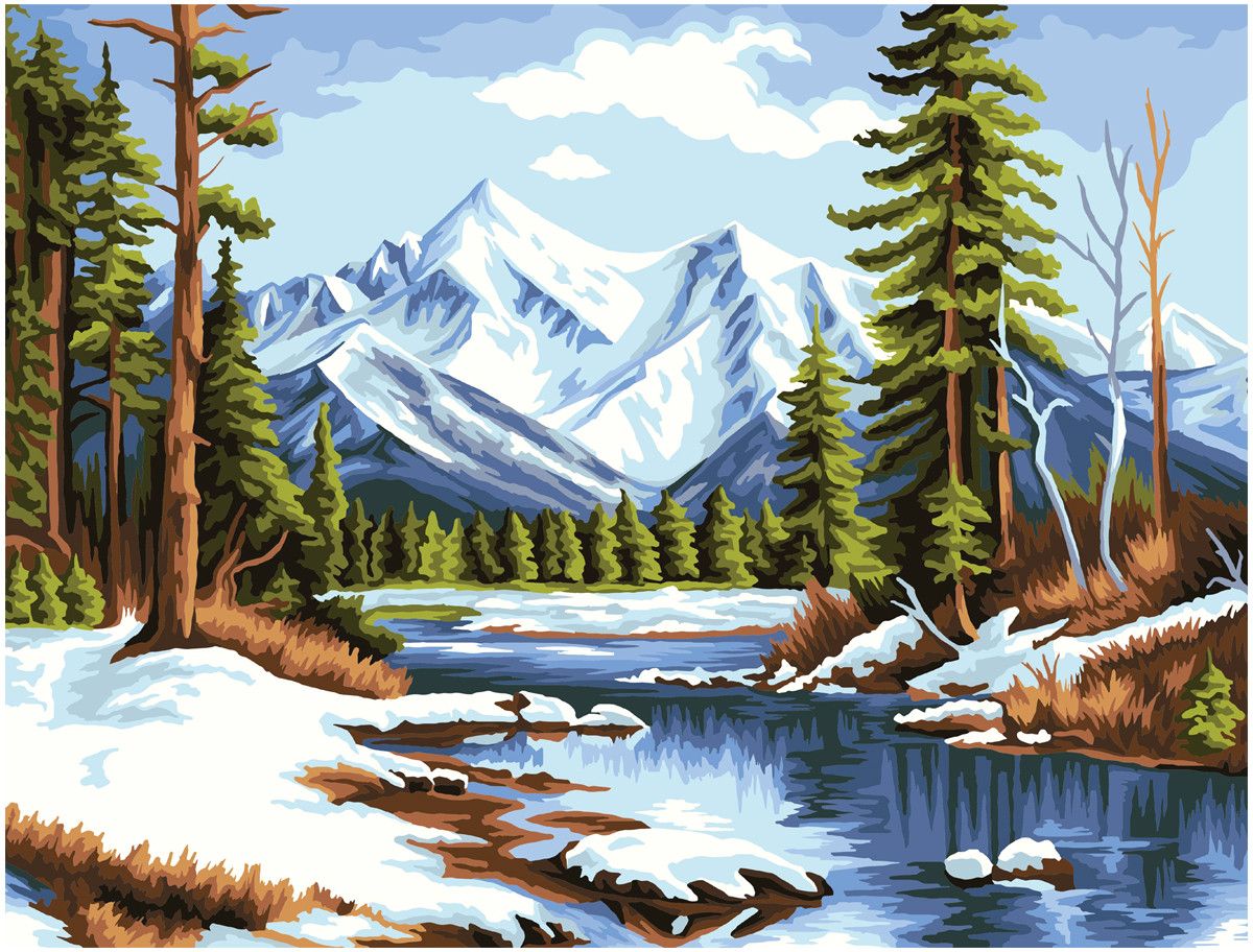 • плотный картон с тиснением под холст размером 30×40 см с нанесенным контуром, пронумерованный в соответствии с номерами красок;