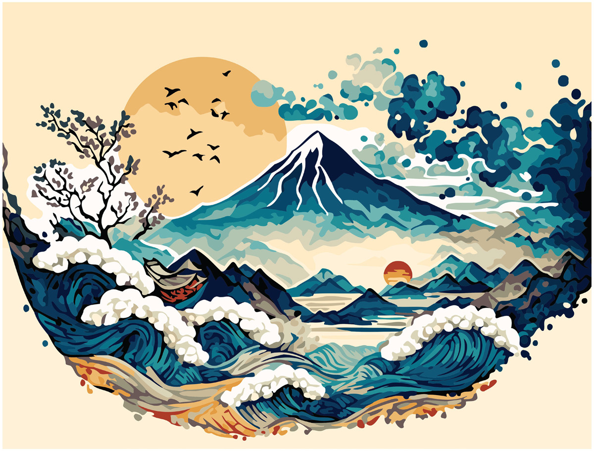• плотный картон с тиснением под холст размером 30×40 см с нанесенным контуром, пронумерованный в соответствии с номерами красок;