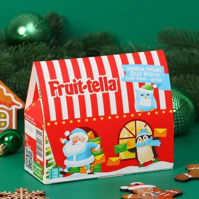 Глюкозный сироп, сахар, гидрогенизированное растительное масло, соки из фруктов и ягод (банановый, яблочный, ананасовый, апельсиновый, клубничный), регулятор кислотности (лимонная кислота), желатин, влагоудерживающий агент (глицерин), натуральные ароматизаторы, загустители (гуммиарабик, декстрины), концентрированные соки (бузина, черная морковь), краситель (экстракт паприки), концентраты (сафлор, спирулина).