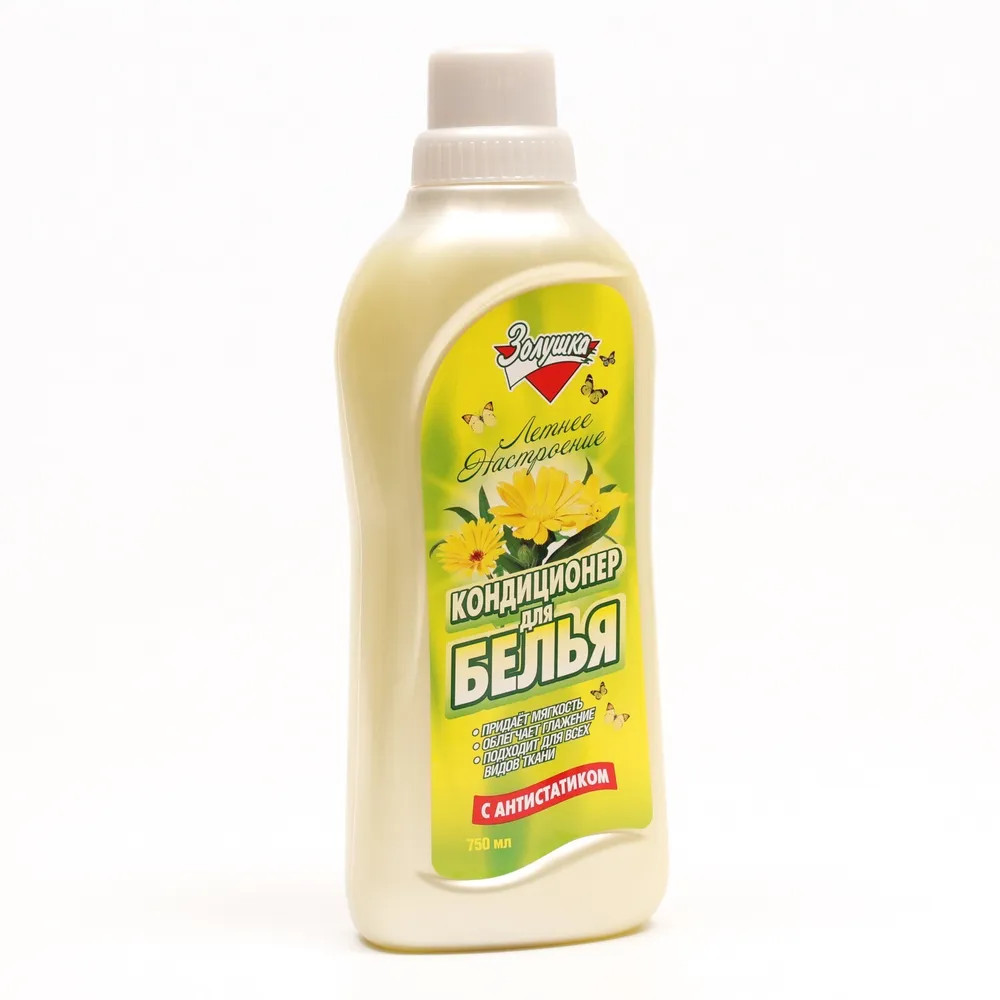 Золушка-кондиционер придает белью необыкновенную мягкость и свежий аромат. Средство облегчает глажение, снимает статическое электричество, подходит для любых видов тканей.