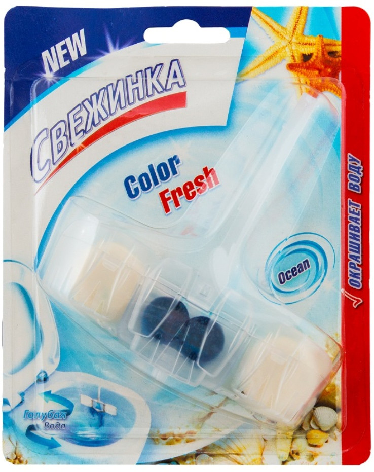 Специально подобранные компоненты трех део-блоков обеспечивают гигиеническую чистоту и свежесть, устраняют загрязнения унитаза, предупреждают отложение осадков в труднодоступных местах, создают обильную пену и приятный запах при смывании. Доказательство эффективности — голубая вода в Вашем туалете!