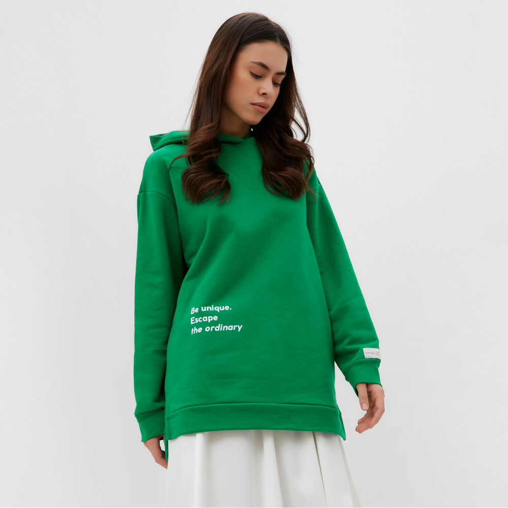 на свой 46 размер взяла 44 и мне свободно, худи оверсайз, берите на размер меньше, на рост 170 прикрывает область бёдер как на модели, ничего лишнего в общем все чётко