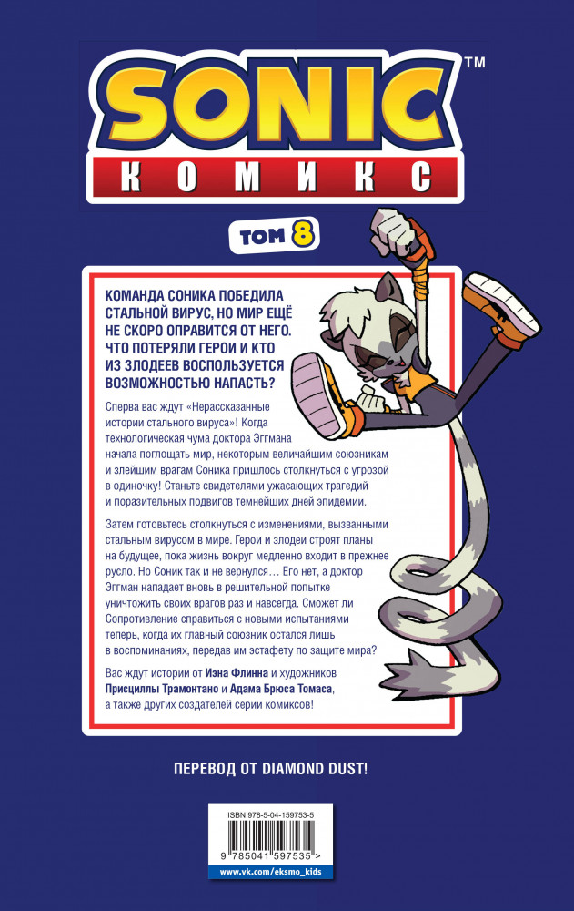 💳 Оплатить за товар можно при получении 🇰🇿 Есть бесплатная доставка по Казахстану 🎁 Копите бонусы с каждой покупки Серия: Sonic. Комиксы Долгожданная 8-я часть приключений Соника и его друзей после металлической эпидемии Доктора Эггмана в фанатском переводе от Diamond Dust. |