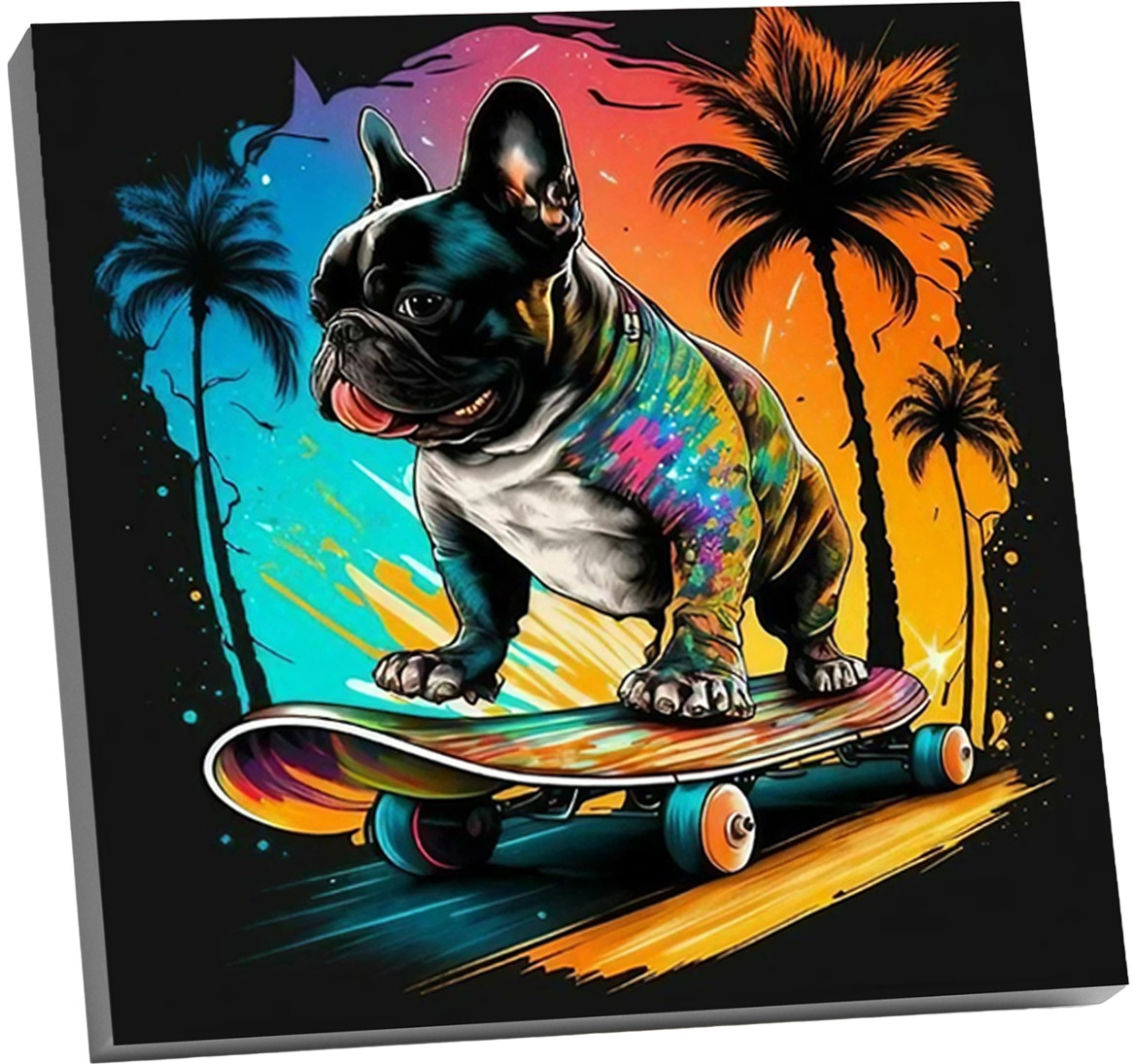 Картина по номерам «Мопс на скейтборде» — набор для творчества, в котором содержится все необходимое для создания шедевра своими руками, используя технику «рисование по номерам». Рисование развивает мелкую моторику рук, художественное воображение, разгружает нервную систему.