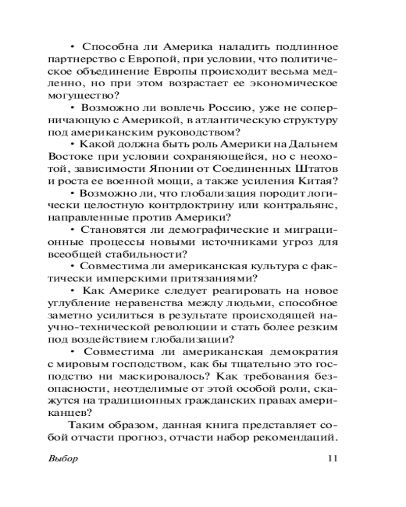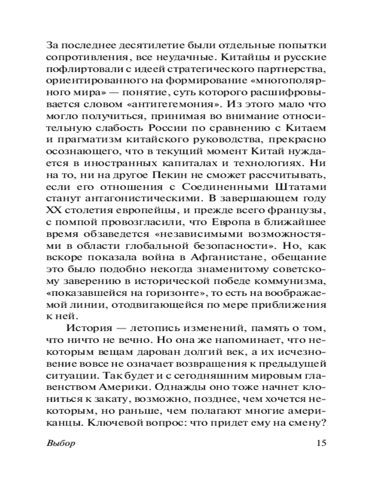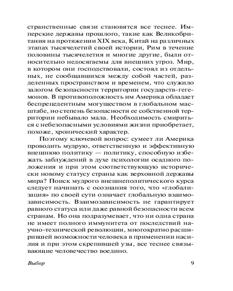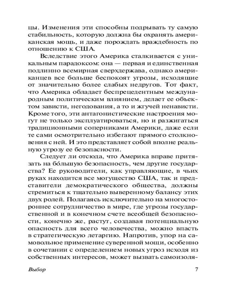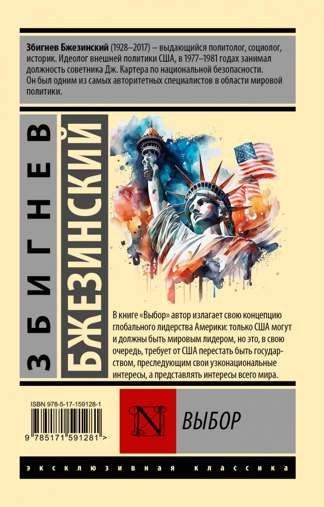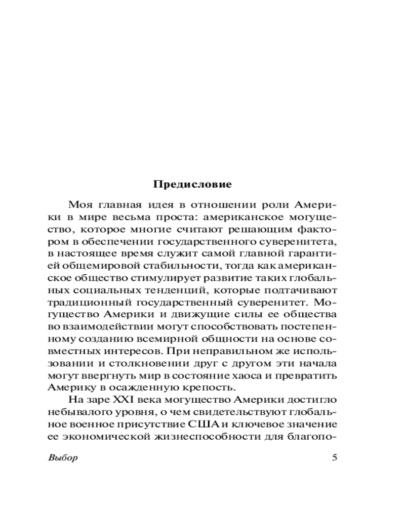 Серия: Эксклюзивная классика В книге «Выбор» автор излагает свою концепцию глобального лидерства Америки: только США могут и должны быть мировым лидером, но это, в свою очередь, требует от США перестать быть государством, преследующим свои узконациональные интересы, а представлять интересы всего мира. |