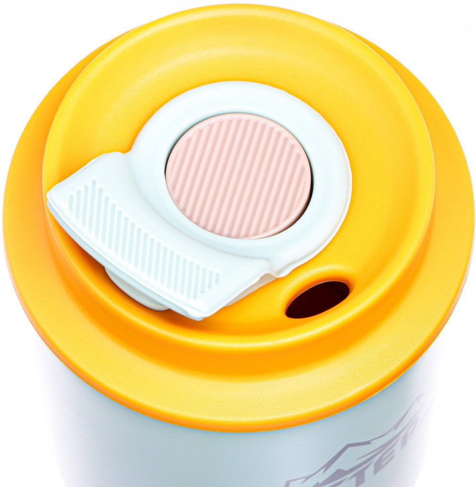 Термокружка изготовлена из нержавеющей стали, не содержащей токсичных веществ. Двойные стенки дольше сохраняют напиток горячим и не обжигают руки. Надежная закручивающаяся крышка с защитой от проливания обеспечит дополнительную безопасность. Крышка оснащена клапаном для питья. Оптимальный объем позволит взять с собой большую порцию горячего кофе или чая. Идеально подходит для холодных напитков. Такая кружка может быть использована во время отдыха, на работе, в путешествии, во время поездок в автомобиле. Поддерживает температуру горячих и холодных напитков в течение 6 часов.
