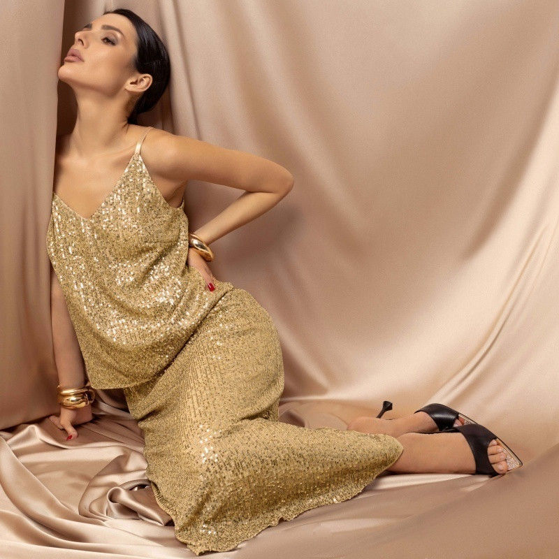 пайетка на сетке стрейч (94% полиэстер, 6% спандекс)