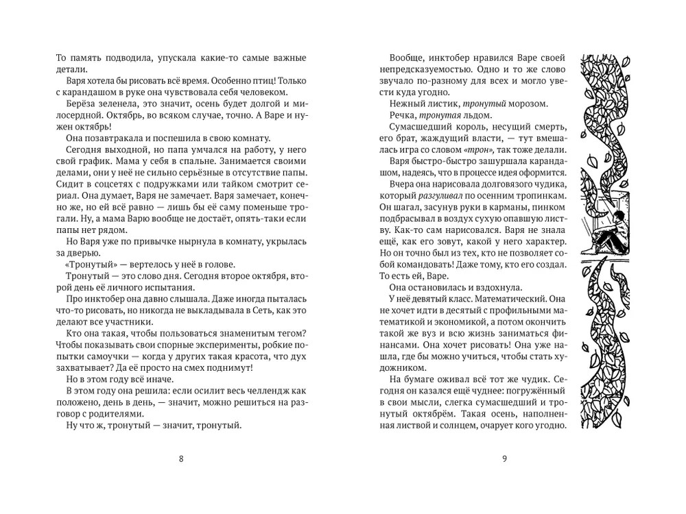 Варя учится в девятом математическом классе и мечтает стать художником. Она — серая мышка, которую ни одноклассники, ни собственные родители почти не замечают. Гоша — бывший студент. На первом курсе университета он умудрился завалить учёбу, рассориться с братом и ввязаться в сомнительный бизнес. Варя и Гоша не знакомы. Кажется, они живут в разных вселенных и лишь издали наблюдают друг за другом. |
