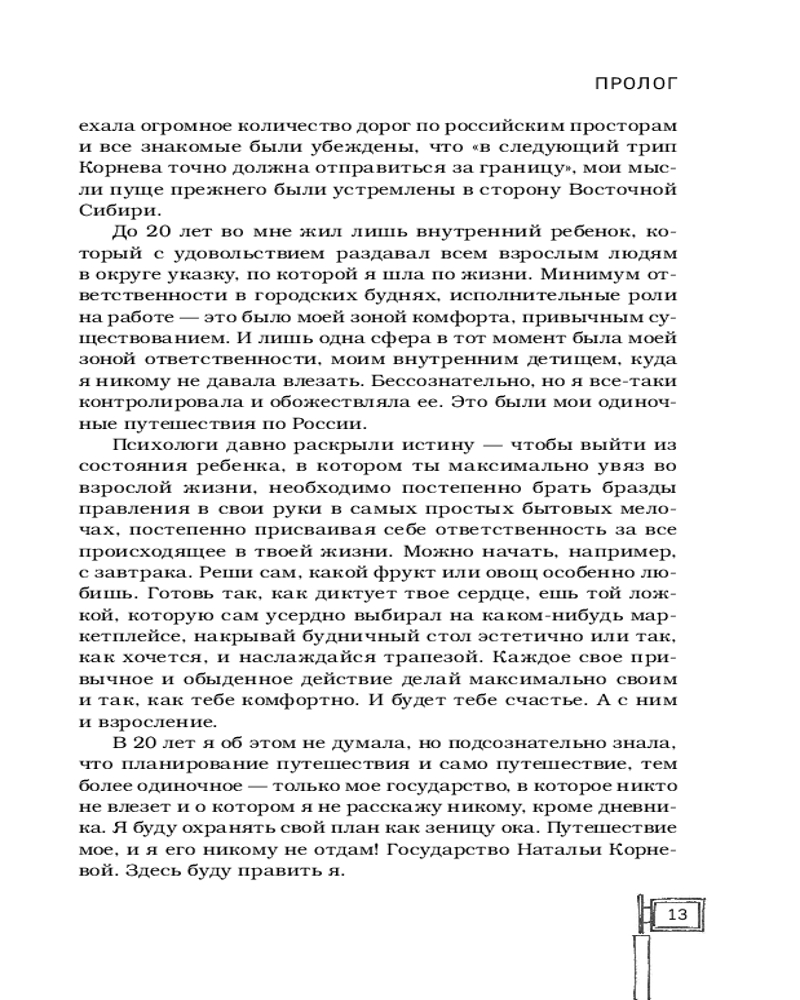 Серия: Мир глазами путешественников Вы держите в руках историю о захватывающим путешествии Наташи Корневой, писателя, блогера и путешественницы, которая не раз проехала всю Россию автостопом. Она доказала, что для незабываемого путешествия не требуется огромное количество денег. Ведь самое ценное в таких приключениях — это опыт и люди, которых мы встречаем на своем пути.