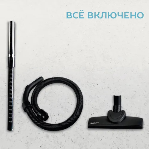 Телескопическая трубка дает возможность настроить длину под свой рост для более удобной уборки. Включать и выключать прибор можно ногой, не наклоняясь к корпусу. В комплект входят 2 насадки. Одна для очистки твердого напольного покрытия и ковра, вторая для бережной очистки мебели и щелевая насадка для труднодоступных мест.
