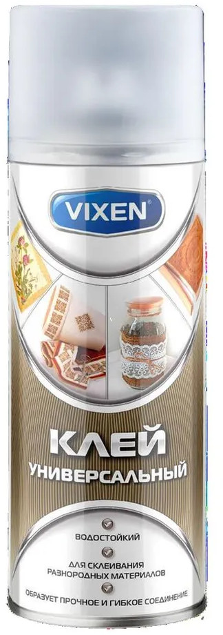 Клей VIXEN универсальный — аэрозольный клей предназначен для склеивания различных материалов, таких как пластик, резина, металл, стекло, ткань, дерево, фольга, картон и другие. Подходит как для гладких, так и для пористых поверхностей. Идеален для склеивания больших площадей поверхности. Склеивает быстро и прочно. Может использоваться в быту, автомобиле, а также в профессиональных работах. Образует прочное, гибкое соединение. Устойчив к воздействию внешних факторов. Клей можно использовать как для временной фиксации, так и для долговременных склеек. Удобное аэрозольное сопло позволяет работать на вертикальных поверхностях, равномерно наносить слой, оптимально расходовать клей.