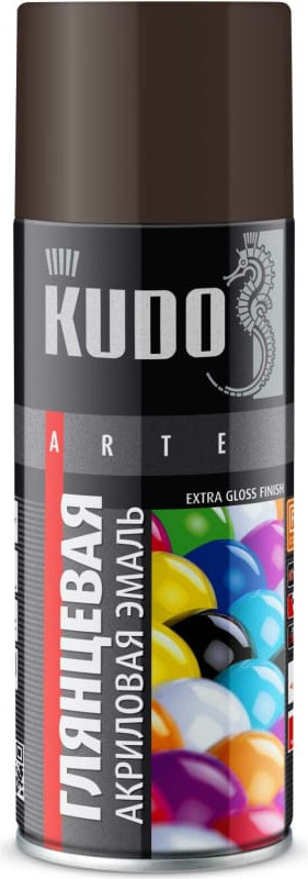 KUDO Краска-спрей акриловая высокоглянцевая, коричневый 8017