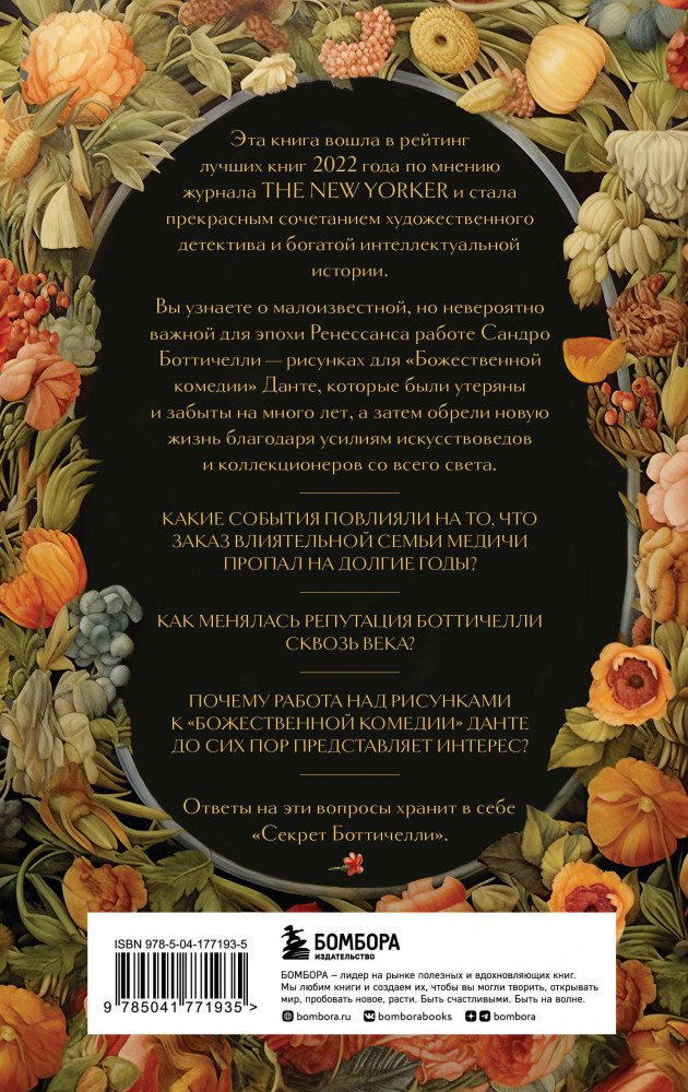 💳 Оплатить за товар можно при получении 🇰🇿 Есть бесплатная доставка по Казахстану 🎁 Копите бонусы с каждой покупки Серия: Таинственное искусство Около пятисот лет назад Сандро Боттичелли, скромный и небогатый художник, создал произведения неземной красоты. Влиятельная семья Медичи поручила ему проиллюстрировать «Божественную комедию» Данте Алигьери. К сожалению, эти рисунки затерялись почти на 400 лет, а великий Боттичелли был забыт. Эта книга расскажет о том, как великий художник вернулся из небытия и какую роль в этом сыграли его удивительные иллюстрации «Божественной комедии». |