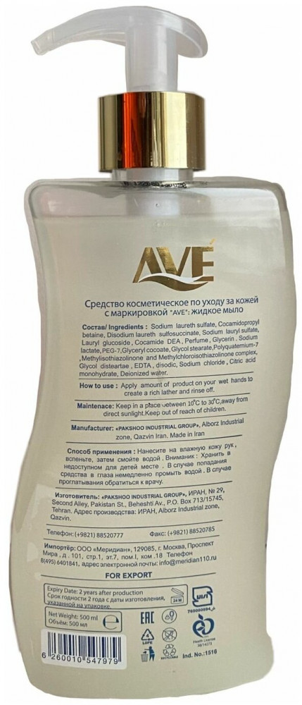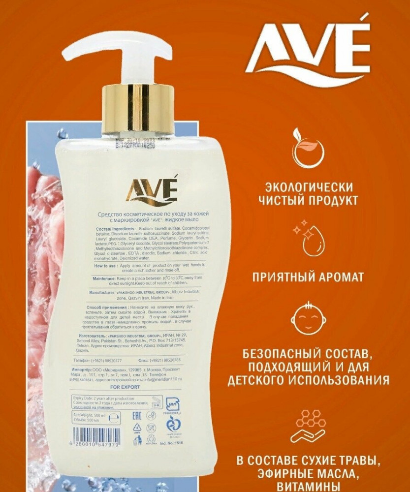 AVE Мыло жидкое для рук с пряным ароматом «Velvet Touch»