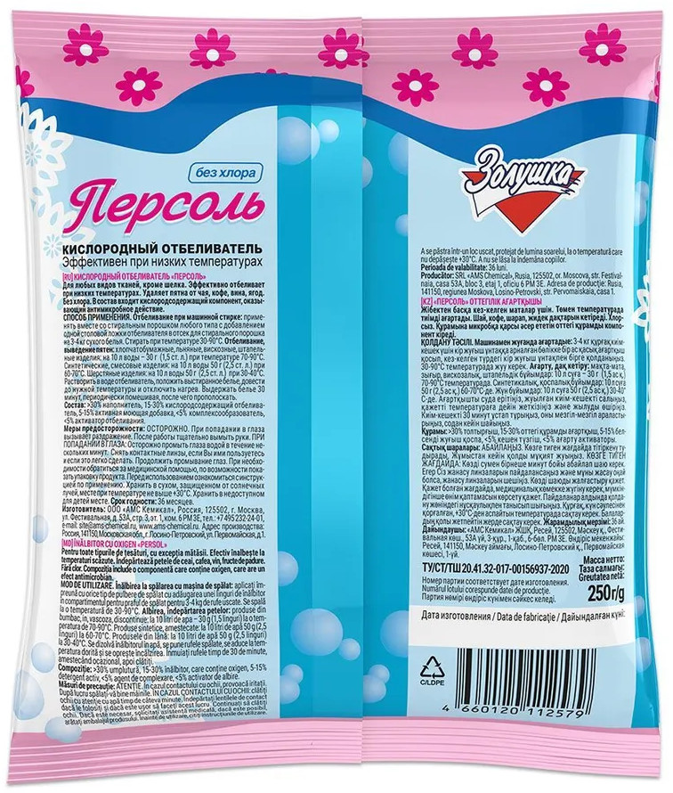 Отбеливатель «Персоль» предназначен для отбеливания любых видов тканей, кроме шелка. Отбеливатель высокоэффективный на основе активного кислорода. Высокое содержание кислородного носителя обеспечивает белизну белому белью и сохраняет яркость цветных изделий. Применяется при ручной и машинной стирке. Универсален на различных стадиях стирки, эффективно отбеливает в холодной воде. Легко удаляет даже самые стойкие пятна от чая, кофе, вина, ягод, вина, фруктов и др.