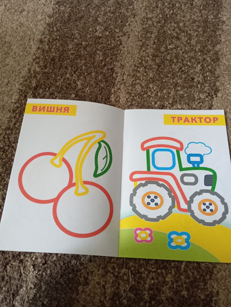 замечательная раскраска. листы плотные, можно даже фломастерами красить. картинки яркие, не маленькие, на весь лист.