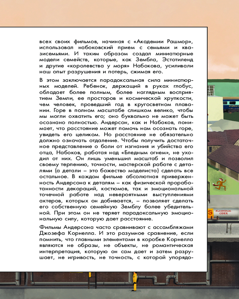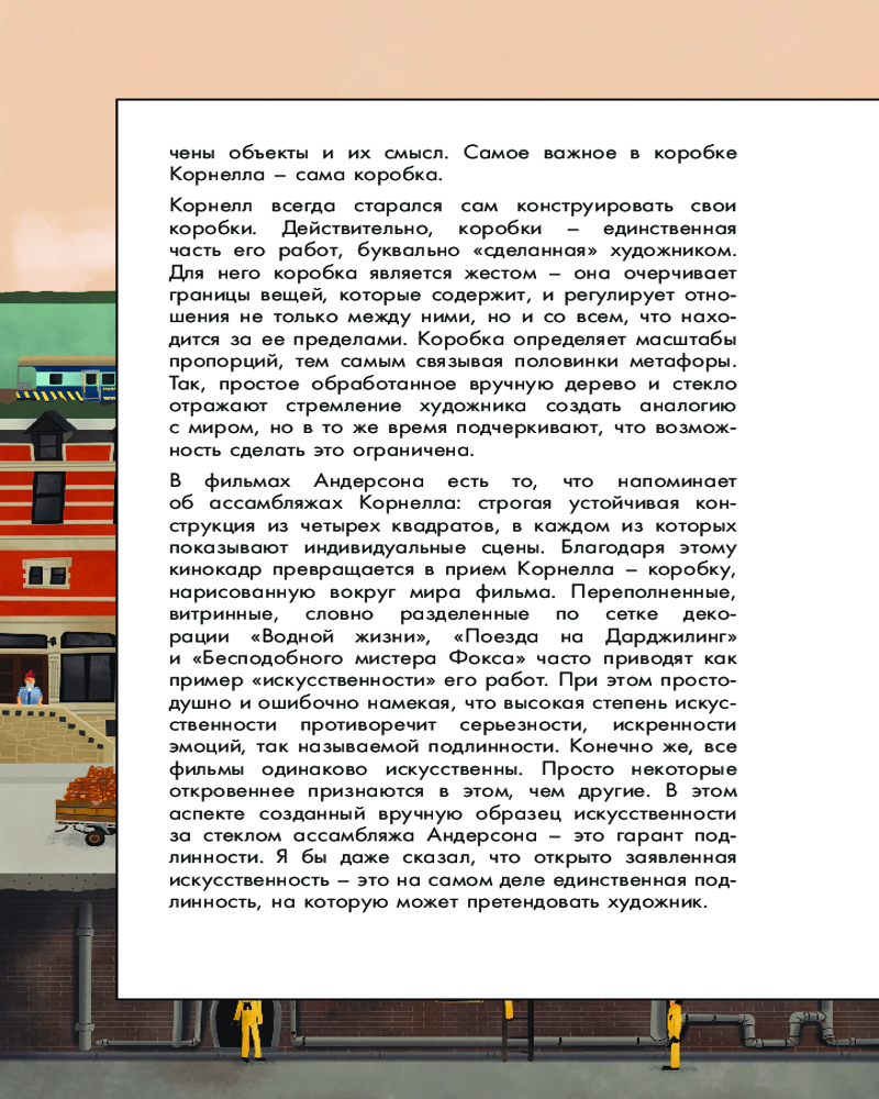 Серия: Подарочные издания. Кино Фильмы Андерсона показывают, что магия искусства, передающая красоту разрушений, разочарований, неудач, упадка, даже уродства и жестокости, является подлинной только в той степени, в которой готова не умалчивать мрачные факты и уловки для изменения ситуации; она честна только в той степени, в которой выстраивает свою строгую и неизбежную коробку вокруг миниатюрной версии мира художника. Балансируя на грани, режиссер каждый раз создает многослойные трагикомедии, которые невозможно полностью разгадать с первого раза, — и за это он так любим критиками и зрителями.