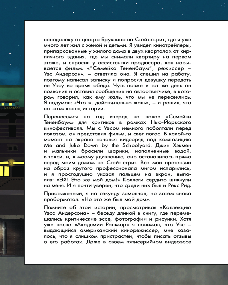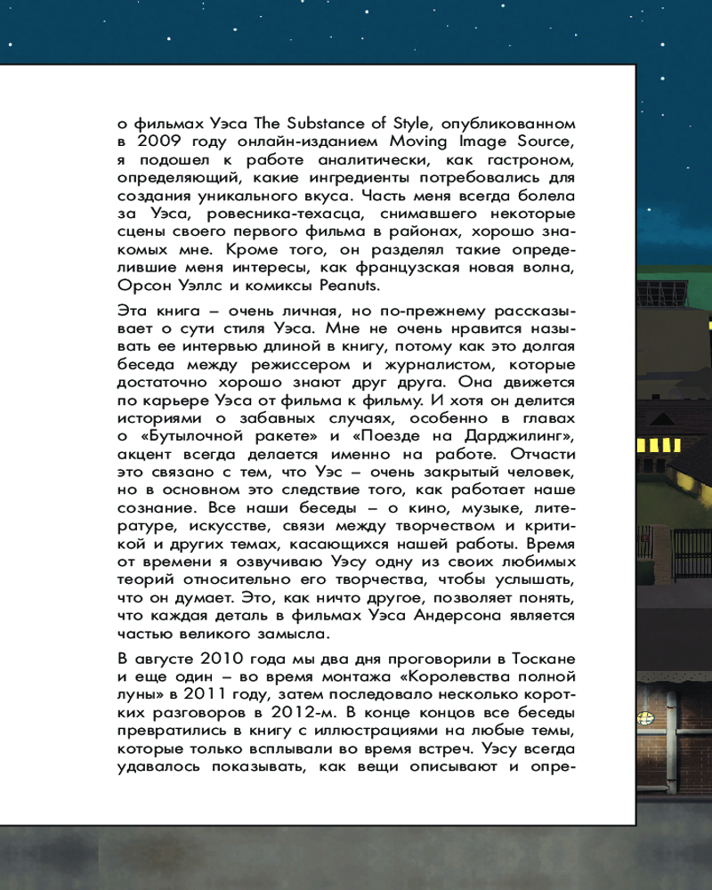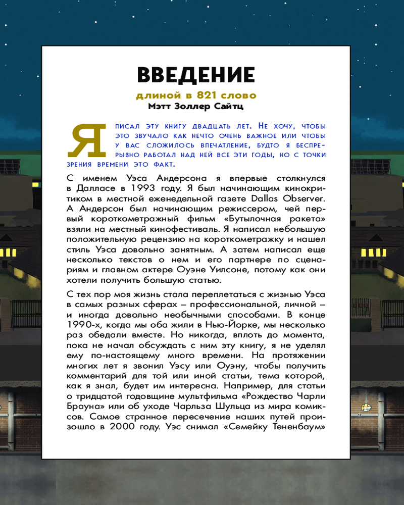 Мэтт Золлер Сайтц является большим поклонником и хорошим другом замкнутого режиссера на протяжении многих лет, поэтому все истории получились откровенными, подробными, а главное — душевными. Каждая глава сопровождается атмосферными иллюстрациями, созданными специально для этой книги. Невероятный подарок для тех, кто видит в фильмах Андерсона больше, чем просто комедии! |